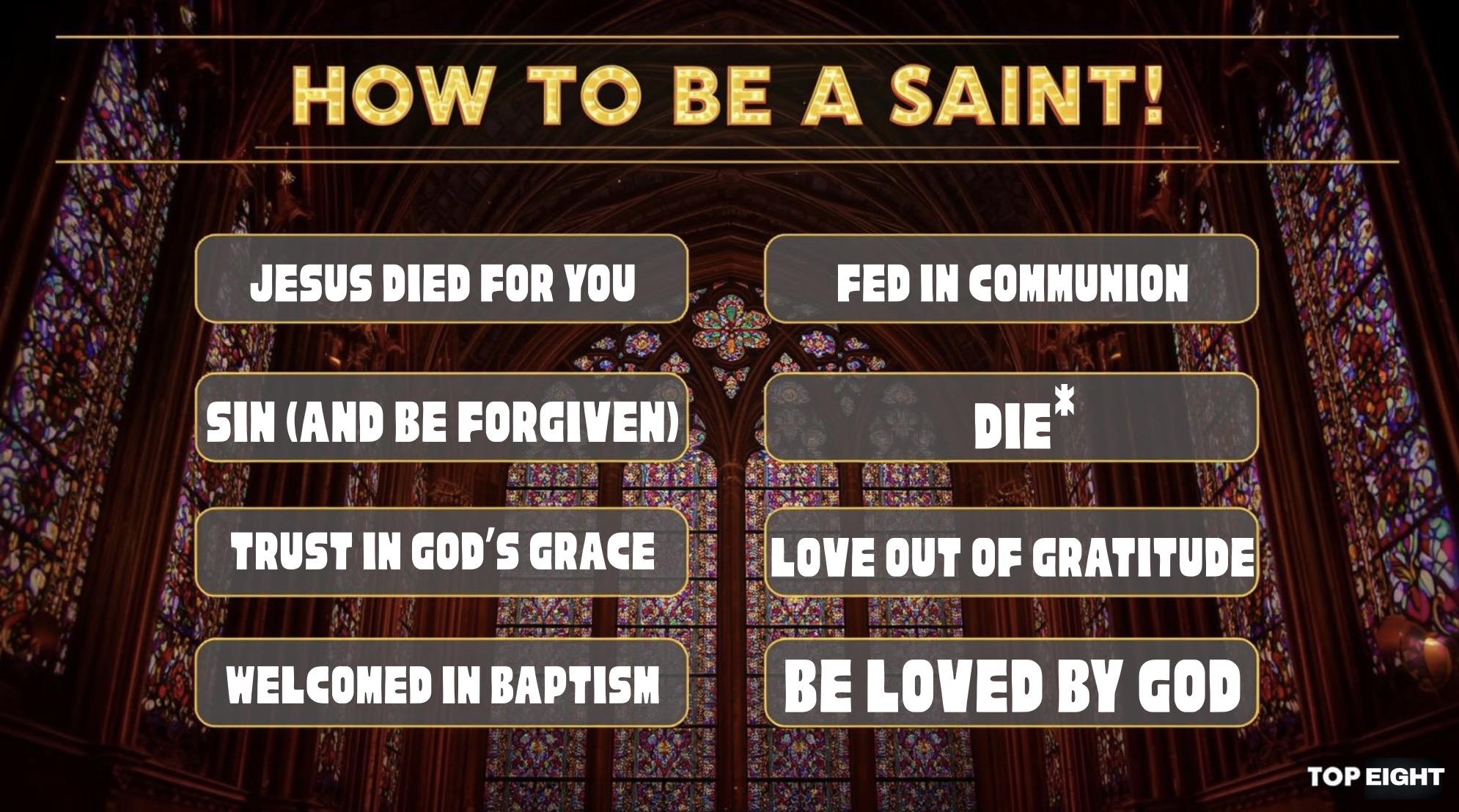 Number 3: Die at some point, because saints are honored on their death day. (There’s an asterisk to that one – being alive when Jesus comes in glory is also an option.)
