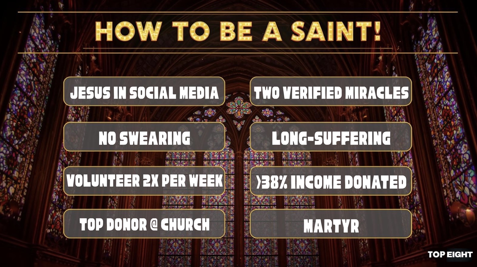 Ten seemed like a bit much, so here’s my top eight list of how to be a saint: