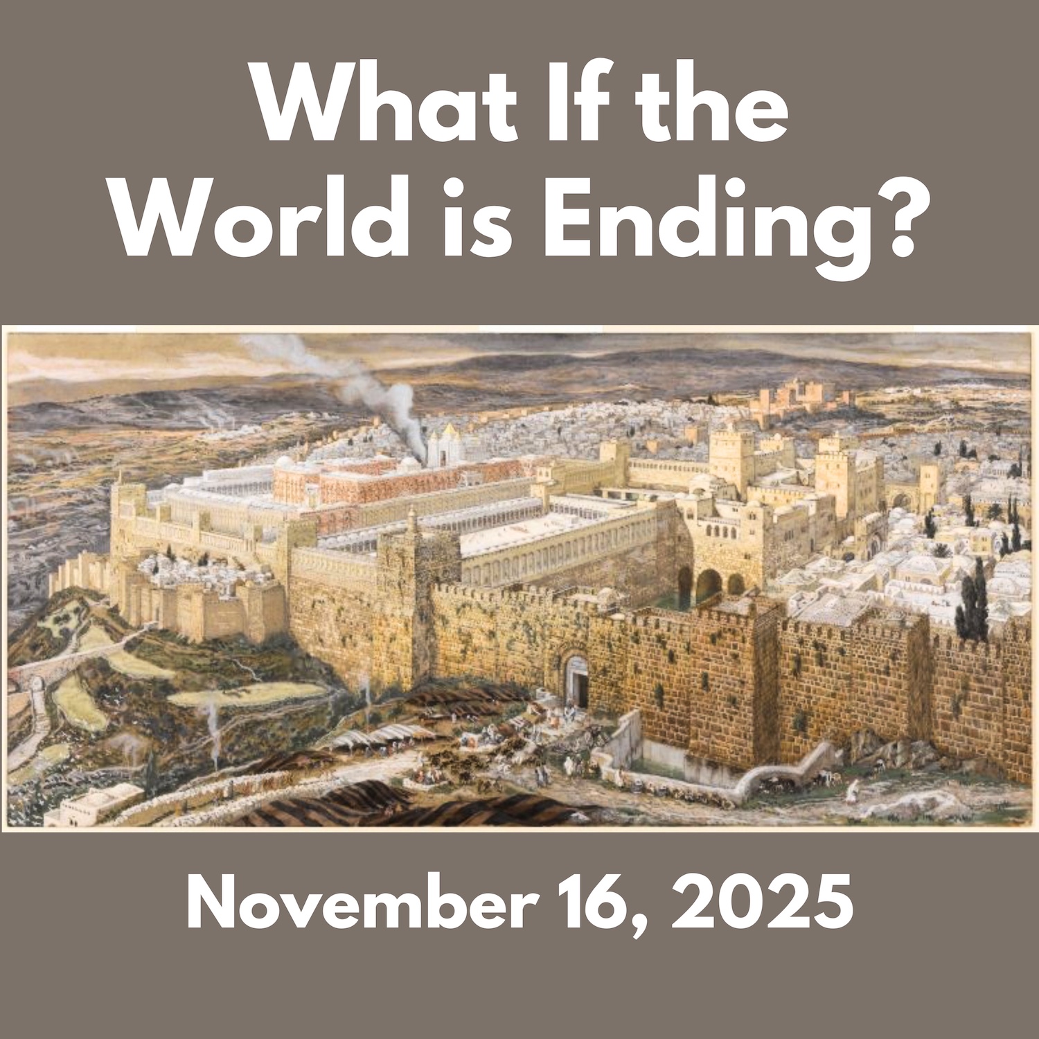 Historically, it turns out they have about 35 more years before the fulfillment of Jesus’ prophecy. In AD 70, in the midst of a Judean rebellion against Rome, the Roman army besieged the city of Jerusalem from April 14 to August 30, and they did in fact destroy the temple. You can go see what’s left of it today. That’s what’s known as the western wall (or the wailing wall) in Jerusalem.